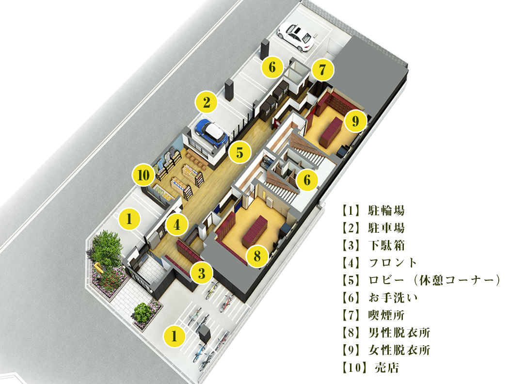| 営業時間 | 年中無休 午前10:00〜深夜3:00(最終受付 深夜2:30) ※設備点検の為、お休みを頂く場合がございます。 |