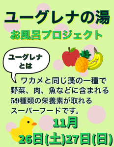 ♡11月26日(土)27日(日)はユーグレナの湯♡