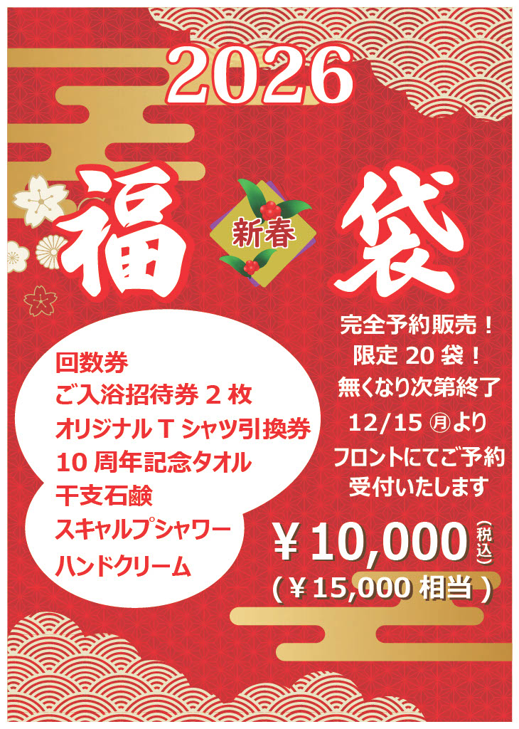 | 2025.12.08 | 12/13日㊏、14日㊐は【じっこう湯】 |
