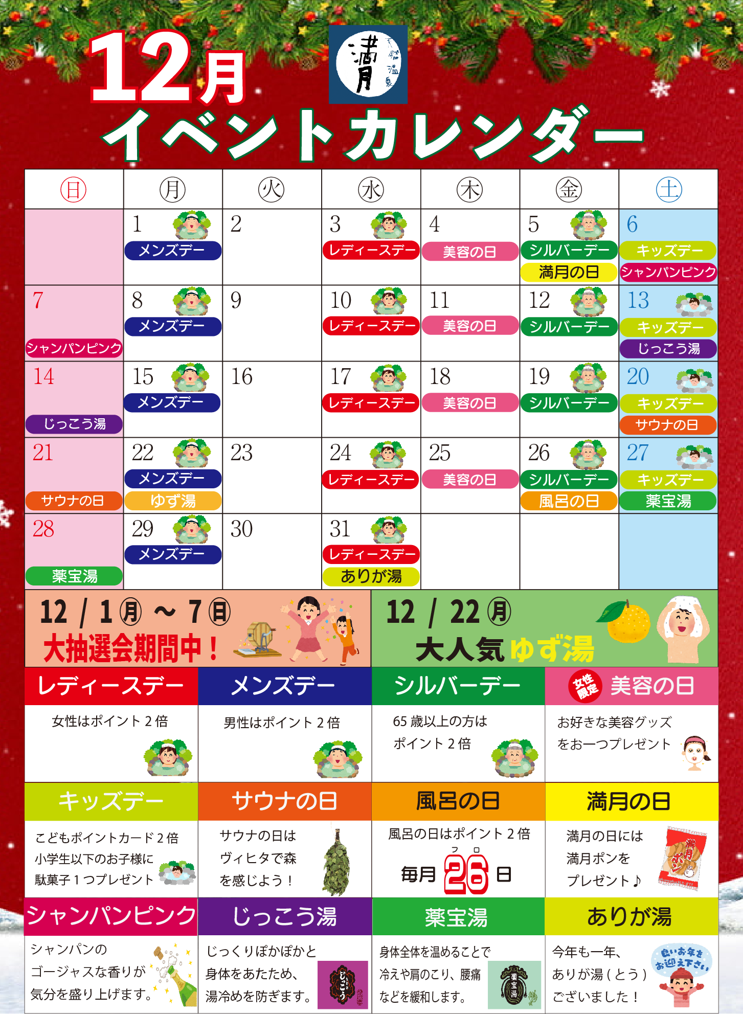 | 2025.11.25 | 12/6日㊏、7日㊐は【シャンパンピンクの湯】 |
